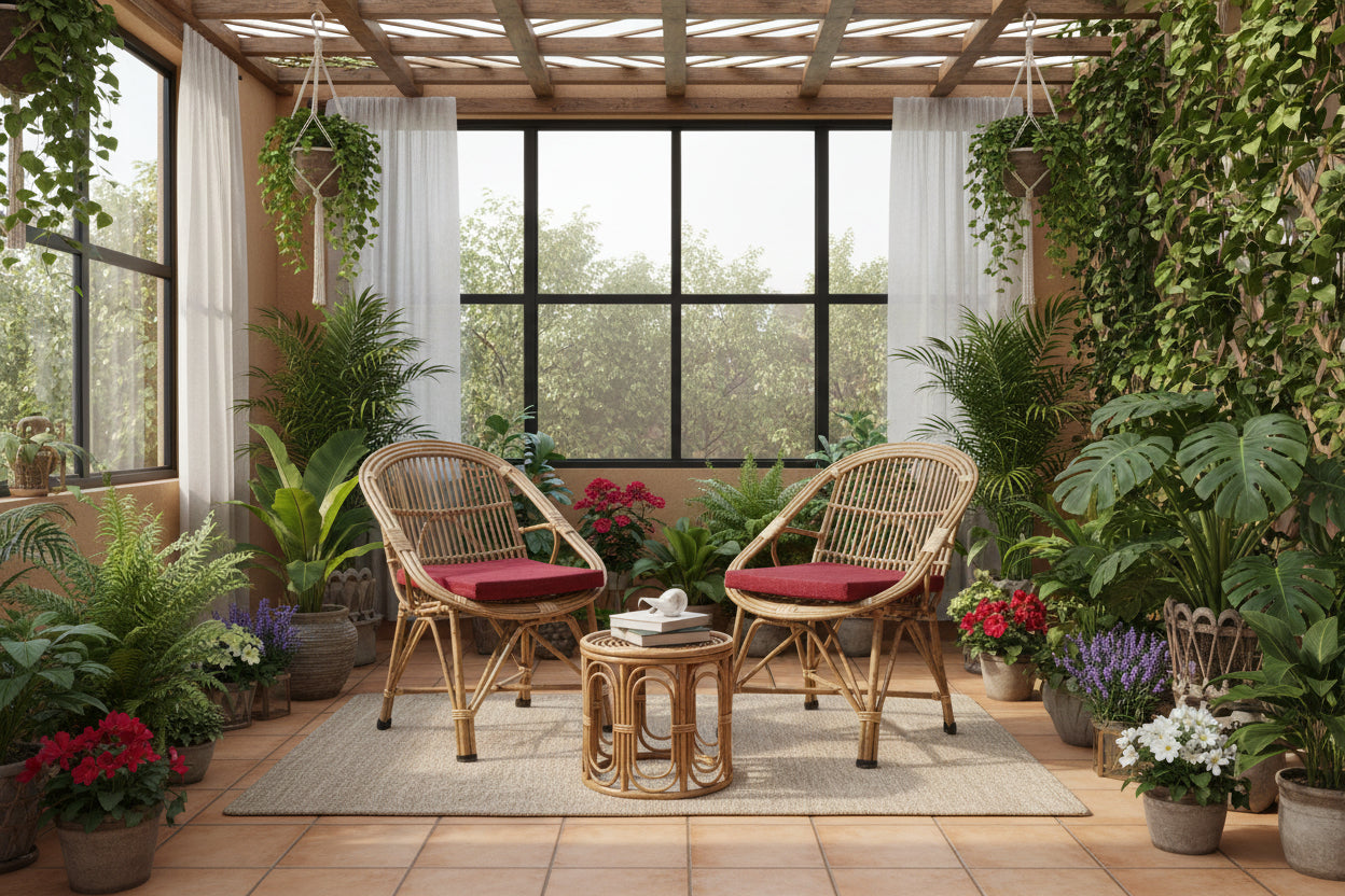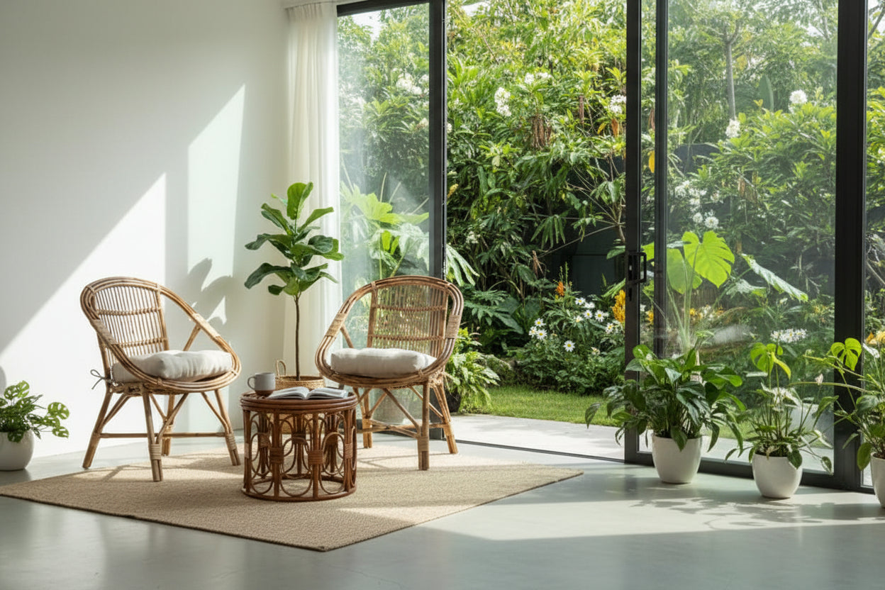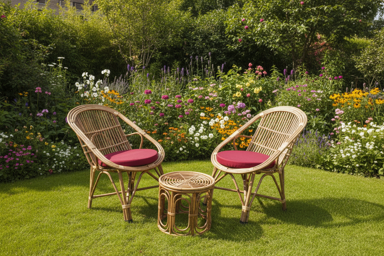 Set of 2 Bamboo Chair Set with Table