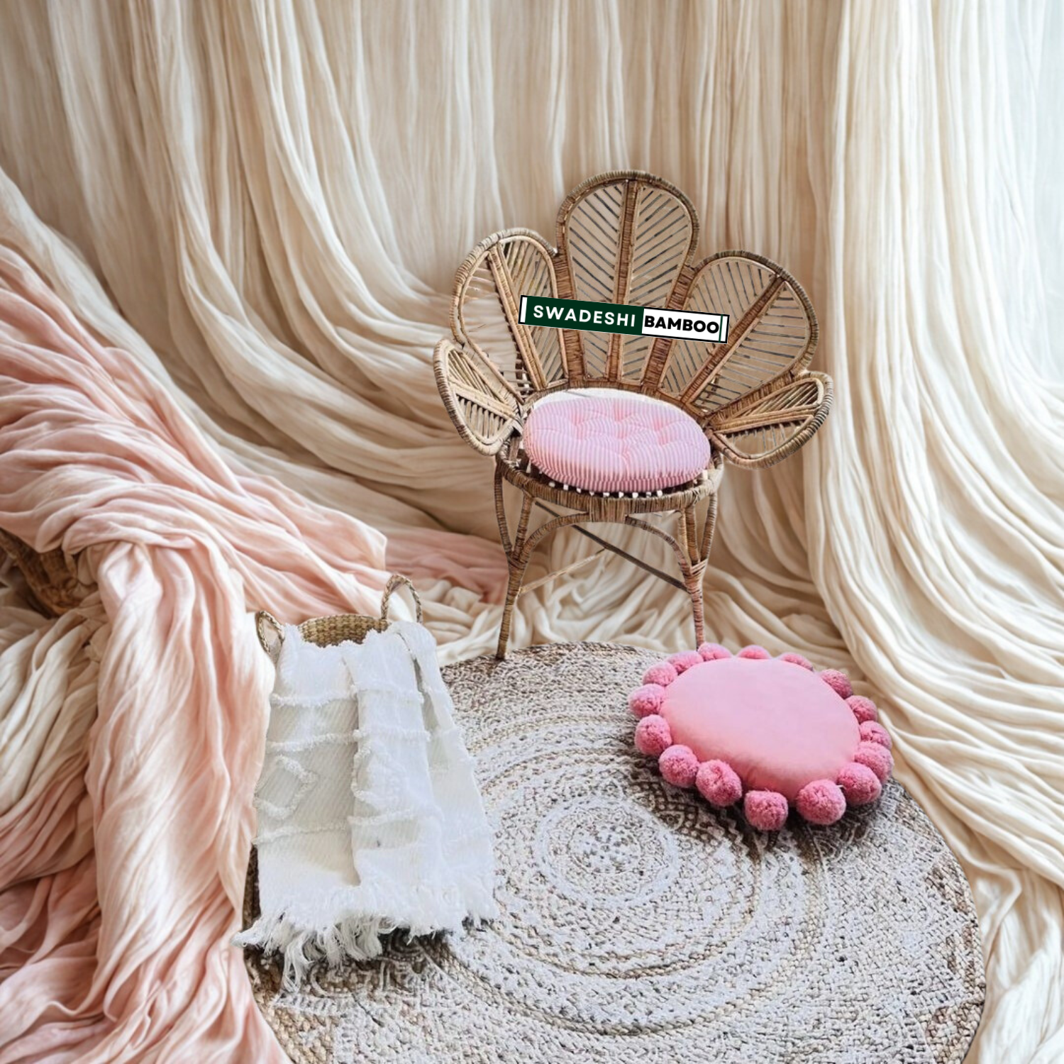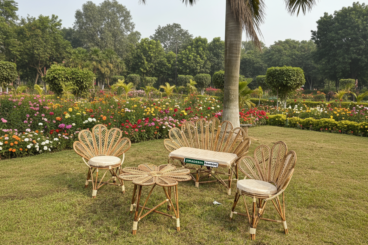 Bamboo Cane Flower Sofa With Chairs Set & Table for Home, Living Room, Office, Outdoor & Indoor